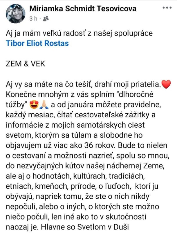 HomeNezaradenéSvetobežníčka Miriam Schmidt Tešovicová a jej mimoriadne pútavé zážitky i fotogr... Nezaradené Svetobežníčka Miriam Schmidt Tešovicová a jej mimoriadne pútavé zážitky i fotogr… By ZEMaVEK 20. decembra 2024 0 22 Zdieľať FacebookXPinterestWhatsApp Svetobežní?ka Miriam Schmidt Tešovicová a jej mimoriadne pútavé zážitky i fotografie z ciest po svete už od januára v ?asopise ZEM&VEK v rubrike Kormorán. Celoro?né predplatné ?asopisu ZEM&VEK 2025 https://zemavek-eshop.sk/produkt/celorocne-predplatne-2025-zemvek-januar-december/ Zdroj telegram Zdieľať FacebookXPinterestWhatsApp Predchádzajúci článokPolícia prijíma v decembri sprísnené dopravnobezpečnostné opatreniaĎalší článokLyžiarske podmienky sú aj napriek vysokým teplotám dobré ZEMaVEK RELATED ARTICLES Nezaradené Lavrov vyzýva na ukončenie „volebného neokolonializmu“ 15. apríla 2026 Nezaradené Irak mal v roku 2026 siedme najsilnejšie arabské námorníctvo 15. apríla 2026 Nezaradené Pakistanský veľvyslanec v Rusku potvrdil rokovania o rope a koordináciu pri prímerí medzi USA a Iránom 15. apríla 2026 Most Popular V Maďarsku sťahujú vojakov z ochrany kritickej infraštruktúry 15. apríla 2026 Jadrová elektráreň Záporožie opäť beží na naftu. Ukrajinské formácie sa nevzdávajú pokusov o provokáciu… 15. apríla 2026 Raphinha sa ospravedlnil za gesto fanúšikom Atletica 15. apríla 2026 Lavrov vyzýva na ukončenie „volebného neokolonializmu“ 15. apríla 2026 Recent Comments jajkopajko na Krajskí prokurátori si prevzali prípadi, ktoré boli v pôsobnosti ŠTS
