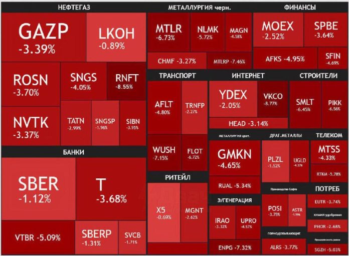 Moskovská burza otvorila s poklesom takmer o 5 %;