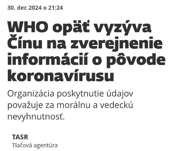 „Bez transparentnosti, výmeny informácií a spolupráce medzi krajinami svet nemôže adekvátne predchádza? budúcim epidémiám a pandémiám a pripravi? sa na ne,“ uviedla WHO.
