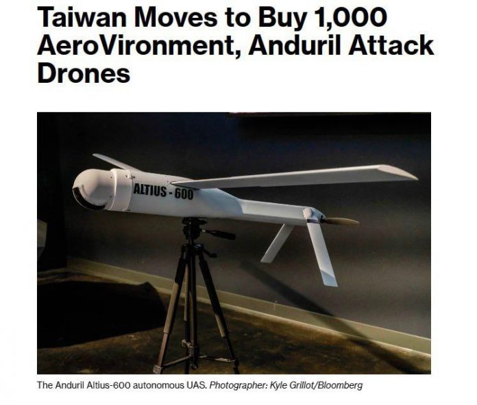 Taiwan podpísal s americkou vládou dohodu o možnosti nákupu 1000 úto?ných dronov na ochranu pred „?ínskou agresiou“, píše Bloomberg.