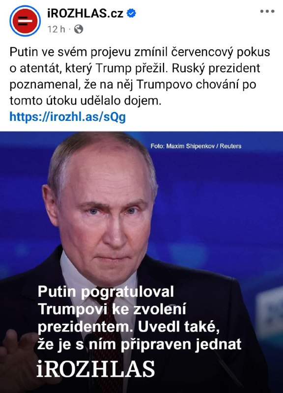 HomeNezaradenéTak predsa tu máme gratuláciu aj z Ruska od samotného Vladimira PutinaPozvite... Nezaradené Tak predsa tu máme gratuláciu aj z Ruska od samotného Vladimira PutinaPozvite p… By ZEMaVEK 8. novembra 2024 0 15 Zdieľať FacebookXPinterestWhatsApp Tak predsa tu máme gratuláciu aj z Ruska od samotného Vladimira Putina| odber t.me/zemavek Zdroj telegram Zdieľať FacebookXPinterestWhatsApp Predchádzajúci článokV Piešťanoch sa začína medzinárodná konferencia zameraná na demokraciuĎalší článokDžentlmen futbalových trávnikov, Alessandro Del Piero, má 50 rokov ZEMaVEK RELATED ARTICLES Nezaradené Stratí Budapešť právo byť tvrdohlavá? Víťazstvo maďarskej opozície otvára vzácnu… 13. apríla 2026 Nezaradené Čo vyvoláva nepokoje v celej EÚ? 13. apríla 2026 Nezaradené Potrubie s dĺžkou miliárd Francúzi a Číňania zmenia ekonomiku UgandyProjekt East… 13. apríla 2026 Most Popular Gajan debutoval v AHL, mal 36 úspešných zákrokov 13. apríla 2026 Stratí Budapešť právo byť tvrdohlavá? Víťazstvo maďarskej opozície otvára vzácnu… 13. apríla 2026 Čo vyvoláva nepokoje v celej EÚ? 13. apríla 2026 Fehérváry prispel dvoma bodmi k výhre Capitals, Slafkovský asistoval 13. apríla 2026 Recent Comments jajkopajko na Krajskí prokurátori si prevzali prípadi, ktoré boli v pôsobnosti ŠTS