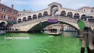 Talianski ekologickí aktivisti zafarbili vody Benátok fluoresceínom, aby vyjadrili nespokojnosť s nedostatočným pokrokom na klimatickom summite COP28 v Dubaji.♧…