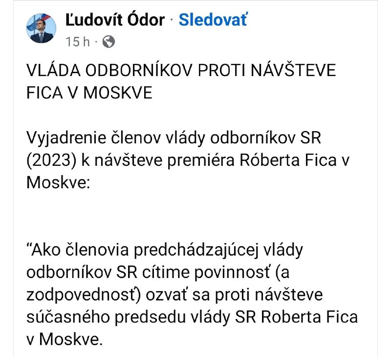 Táto neohlásená, netransparentná zahrani?ná cesta predsedu vlády a rokovania s ruským prezidentom Vladimírom Putinom, na ktoré nemá mandát, sú v priamom rozpore so slovenskými záujmami i prijatými strategickými dokumentami, poškodzuje slovenskú pozíciu v Európskej únii ako aj našich politických a bezpe?nostných spojencov, a vážne zhoršuje obraz našej krajiny v zahrani?í.”