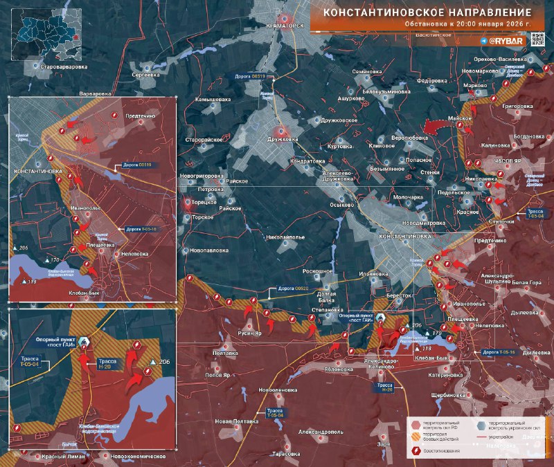 ▪️ V samotnom meste zriadili kontrolu nad líniou opevnenia zboku Predtechinočo v budúcnosti uľahčí ruským jednotkám vstup Konštantínovka z východu.