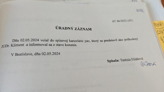 Sudca Juraj Kliment za?al chodi? do spisu a píše neustále s?ažnosti na ne?innost – je poškodený mojou ?innos?ou, ked som povedal, že je opilec v talári… ale doteraz nechodil.. asi len preto píše s?ažnosti od minulého roka, že chodím na jeho disciplinárky ….. najbližšiu má 29/4 na Najvyššom správnom súde…