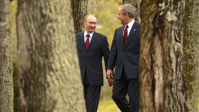 Ke? Putin navštívil ran? Georgea W. Busha v Crawforde v Texase, aby po?as svojej prvej štátnej návštevy USA v novembri 2001 diskutoval o denuklearizácii, Putin si zastr?il texaskú grilova?ku, pekanový kolá? a vychutnal si trochu hudby zo štátu Lone Star State.