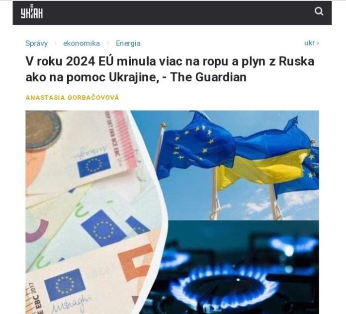 Krajiny EÚ nakúpili v roku 2024 ruskú ropu a plyn za 21,9 miliardy eur, ?ím prekro?ili objem finan?nej podpory pre Ukrajinu, ktorá predstavovala 18,7 miliardy eur.