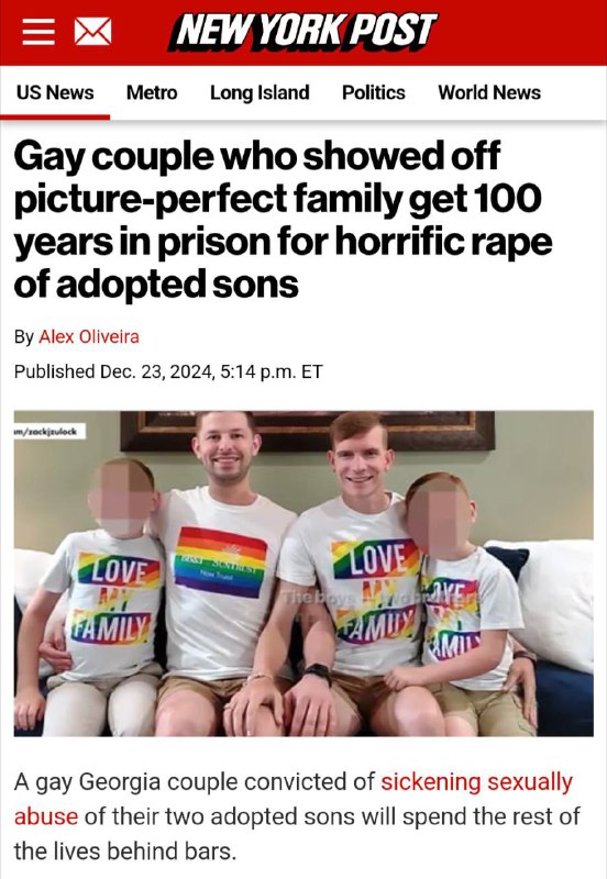 Homosexuálny pár zo Spojených štátov bol odsúdený na doživotie za týranie svojich adoptovaných detí. V Georgii boli manželia William a Zachary Zulockovci, ktorí žili na luxusnom predmestí Atlanty, odsúdení na 100 rokov väzenia bez možnosti podmiene?ného prepustenia.