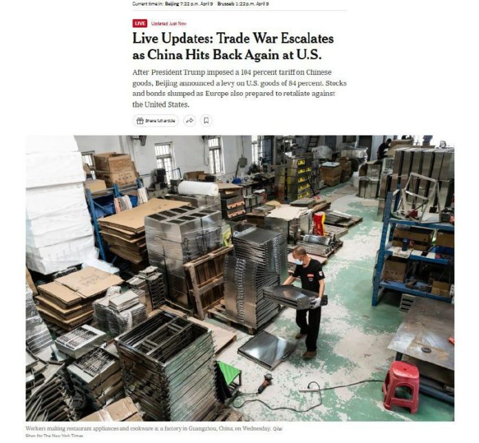 The New York Times: ?ína zvýšila colnú tarifu z 34 % na 84 % na dovoz z USA