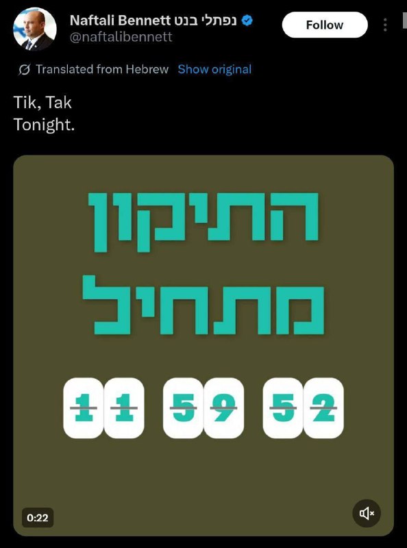 „Tik-tak, dnes večer. Poprava začína,“ – Naftali Bennett, bývalý izraelský premiér a v súčasnosti v opozícii.