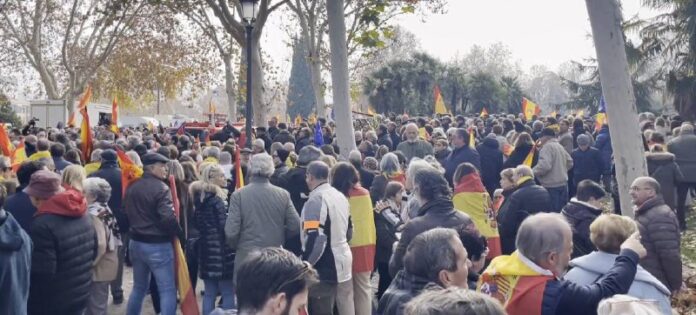Demonštráciu zorganizovala konzervatívna ?udová strana v predve?er D?a španielskej ústavy a konala sa v chráme Debod pod heslom: „Španielsko sa nevzdáva.“