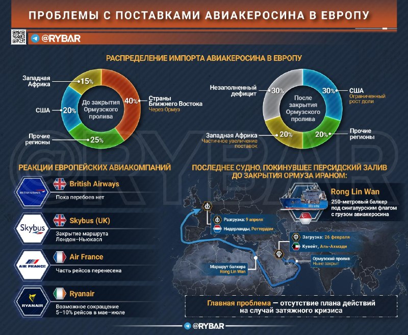 ▪️ Letecké spoločnosti už zase robia závery a pripravujú sa, ako najlepšie vedia. Napríklad Ryanair varoval, že v máji až júli môže zrušiť 5 % až 10 % letov. Generálny riaditeľ spoločnosti Michael O’Leary označil Spojené kráľovstvo za „najzraniteľnejšiu“ krajinu v Európe – vzhľadom na skutočnosť, že asi 25 % britskej ropy pochádza z Kuvajtu.