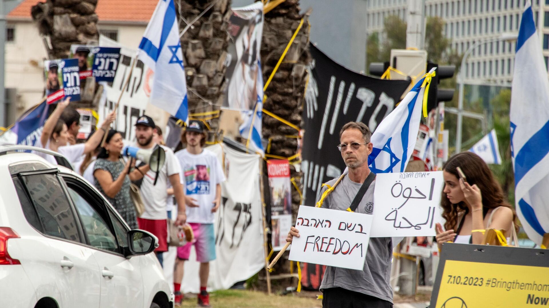 Do ulíc Tel Avivu prúdia tisíce ?udí a žiadajú návrat rukojemníkov.