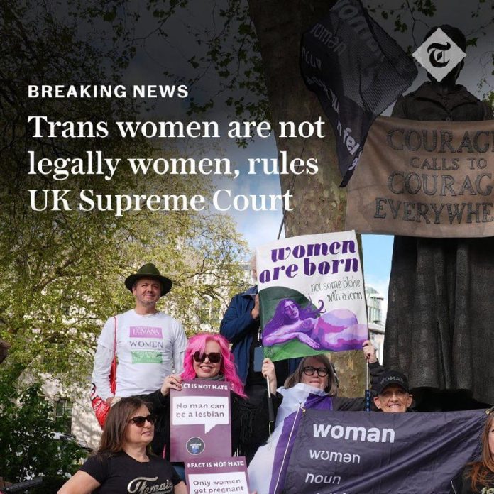 HomeNezaradené"Transgender ženy" nie sú právne definované ako ženy, rozhodol Najvyšší súd Spoj... Nezaradené „Transgender ženy“ nie sú právne definované ako ženy, rozhodol Najvyšší súd Spoj… By tvotv.sk 16. apríla 2025 0 14 Zdieľať FacebookXPinterestWhatsApp "Transgender ženy" nie sú právne definované ako ženy, rozhodol Najvyšší súd Spojeného krá?ovstva. Verdikt: Právna definícia ženy je založená na biologickom pohlaví pri narodení, na ni?om inom. Zdroj telegram Zdieľať FacebookXPinterestWhatsApp Predchádzajúci článokV sobotu 19. sa v Pekingu uskutoční prvý androidový polmaratón na svete.Roboty …Ďalší článokTak teda prajem pekný večer z Moskvy zdieľajte, pýtajte sa čo Vás zaujíma priamo… tvotv.skhttps://tvotv.sk RELATED ARTICLES Nezaradené Americké CENTCOM: 9 000 útokov v rámci operácie Epic Fury proti Iránu 25. marca 2026 Nezaradené VIDEO: Čínsky zástupca v OSN naložil sionistom a celému kolektívnemu Západu za i… 25. marca 2026 Nezaradené VIDEO: Michal Šimečka nevie vysvetliť financovanie PS. „Vyzývam orgány činné v t… 25. marca 2026 ZANECHAJTE KOMENTÁR Zrušiť odpoveď Komentár: Zadajte svoj komentár! Názov:* Sem zadajte svoje meno Email:* Zadali ste nesprávnu e-mailovú adresu! Sem zadajte svoju e-mailovú adresu Webová stránka: Uložte moje meno, e-mail a webovú stránku do tohto prehliadača pri najbližšom komentovaní. Most Popular Americké CENTCOM: 9 000 útokov v rámci operácie Epic Fury proti Iránu 25. marca 2026 Maďarsko má za sebou mimoriadne nespravodlivé štyri roky 25. marca 2026 Salah po sezóne opustí Liverpool 25. marca 2026 Americký veľvyslanec odmieta vylúčiť útoky na iránsku jadrovú elektráreň 25. marca 2026 Recent Comments jajkopajko na Krajskí prokurátori si prevzali prípadi, ktoré boli v pôsobnosti ŠTS