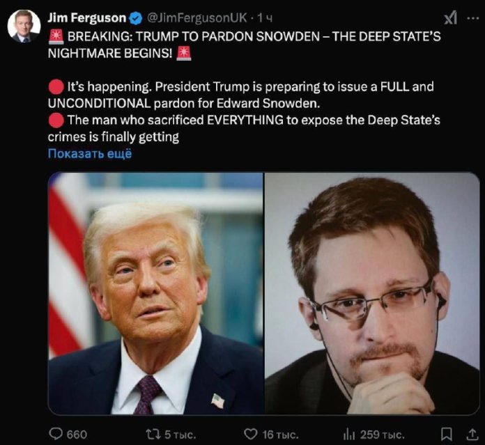 HomeNezaradenéTrump omilostil SnowdenaK.O. pre deepstate PARDON pre Snowdenat.me/miroslavkame... Nezaradené Trump omilostil SnowdenaK.O. pre deepstate PARDON pre Snowdenat.me/miroslavkame… By Miroslav Kamenský 12. februára 2025 0 1 Zdieľať FacebookTwitterPinterestWhatsApp Trump omilostil Snowdena K.O. pre deepstate PARDON pre Snowdena Zdroj telegram Zdieľať FacebookTwitterPinterestWhatsApp Predchádzajúci článokS deťmi je o tragédiách potrebné hovoriť citlivo, odporúča psychológĎalší článokNominálna mzda bola v decembri vyššia vo všetkých odvetviach Miroslav Kamenský RELATED ARTICLES Nezaradené https://youtu.be/iy-sungWzX4Pavol Slota: Zverejnené maily Lajčáka a Epsteina ako… 20. novembra 2025 Nezaradené Kronika špeciálnej vojenskej operácie na 20. novembra 2025. Ruské jednotky sú… 20. novembra 2025 Nezaradené DOKUMENT: Šokujúci list žilinského krajského prokurátora o tom, ako mal podľa ne… 20. novembra 2025 ZANECHAJTE KOMENTÁR Zrušiť odpoveď Komentár: Zadajte svoj komentár! Názov:* Sem zadajte svoje meno Email:* Zadali ste nesprávnu e-mailovú adresu! Sem zadajte svoju e-mailovú adresu Webová stránka: Uložte moje meno, e-mail a webovú stránku do tohto prehliadača pri najbližšom komentovaní. Most Popular https://youtu.be/iy-sungWzX4Pavol Slota: Zverejnené maily Lajčáka a Epsteina ako… 20. novembra 2025 Pochopte a zapamätajte si jednu jednoduchú vec. Aj keď zrazu nejakým zázračným spôsobom… 20. novembra 2025 Bývalý šéf CIA predvolaný v prieskume Russiagate – médiá 20. novembra 2025 Kronika špeciálnej vojenskej operácie na 20. novembra 2025. Ruské jednotky sú… 20. novembra 2025 Načítať viac Recent Comments jajkopajko na Krajskí prokurátori si prevzali prípadi, ktoré boli v pôsobnosti ŠTS