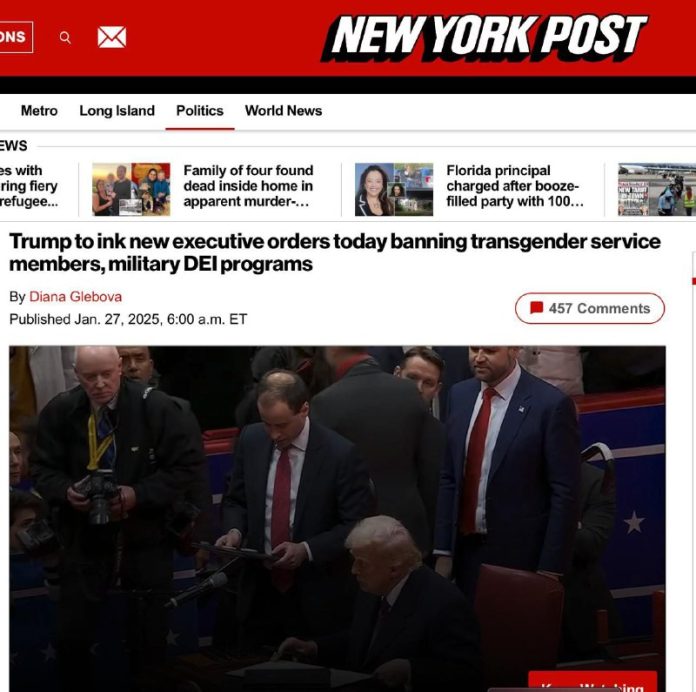Trump podpísal dva výkonné príkazy, ktoré zakazujú transgender ?u?om slúži? v armáde a ukon?ujú programy vojenskej diverzity, spravodlivosti a za?le?ovania, uvádza The New York Post.