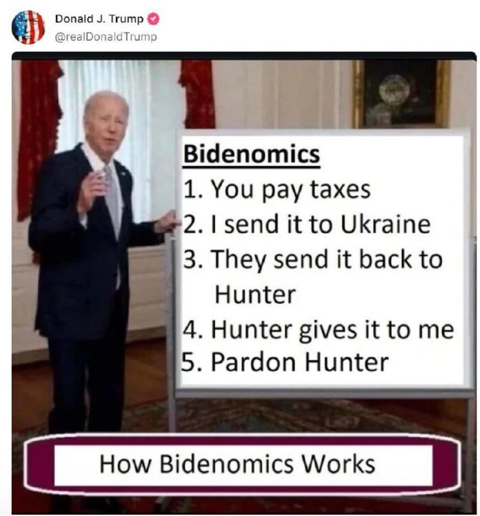Na sociálnej sieti Truth zverejnil fázy „Bidenomics“.