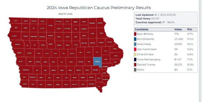 Trump vedie v boji o jediného kandidáta do amerických prezidentských volieb za Republikánmi v štáte Iowa.