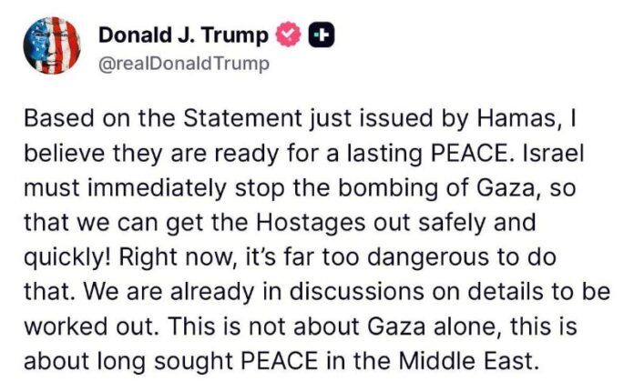 HomeVojenské spravodajstvoTrump vyhlásil, že Izrael musí okamžite prestať bombardovať Gazu.... Vojenské spravodajstvo Trump vyhlásil, že Izrael musí okamžite prestať bombardovať Gazu…. By tvotv.sk 4. októbra 2025 0 7 Zdieľať FacebookTwitterPinterestWhatsApp Trump vyhlásil, že Izrael musí okamžite presta? bombardova? Gazu. Zdroj telegram Zdieľať FacebookTwitterPinterestWhatsApp Predchádzajúci článokNajzaujímavejšie udalosti uplynulého týždňa – 40.Ďalší článokPRICHÁDZA PROJEKT AGORA – ŠIALENÝ BRUSELSKÝ PLÁN NA PODPORU MIMOVLÁDOKPo zasta… tvotv.skhttps://tvotv.sk RELATED ARTICLES Afrika Africká únia vyzýva Izrael, aby zrušil uznanie Somalilandu 9. januára 2026 Vojenské spravodajstvo „Tieto nelegálne záchvaty sa musia zastaviť!“ – Rep. Luna o prenasledovaní pravoslávnych kresťanov na Ukrajine 9. januára 2026 Vojenské spravodajstvo Americká kongresmanka: Americké daňové doláre by nemali financovať prenasledovanie kresťanov na Ukrajine 9. januára 2026 ZANECHAJTE KOMENTÁR Zrušiť odpoveď Komentár: Zadajte svoj komentár! Názov:* Sem zadajte svoje meno Email:* Zadali ste nesprávnu e-mailovú adresu! Sem zadajte svoju e-mailovú adresu Webová stránka: Uložte moje meno, e-mail a webovú stránku do tohto prehliadača pri najbližšom komentovaní. Most Popular Kontrola zdrojov Venezuely Čo je zlé na Trumpových plánoch? – Časť 1Američania, ktorí… 9. januára 2026 Africká únia vyzýva Izrael, aby zrušil uznanie Somalilandu 9. januára 2026 „Tieto nelegálne záchvaty sa musia zastaviť!“ – Rep. Luna o prenasledovaní pravoslávnych kresťanov na Ukrajine 9. januára 2026 Ceny pohonných látok v úvode roka stagnovali, medziročne klesli o 7 % 9. januára 2026 Načítať viac Recent Comments jajkopajko na Krajskí prokurátori si prevzali prípadi, ktoré boli v pôsobnosti ŠTS