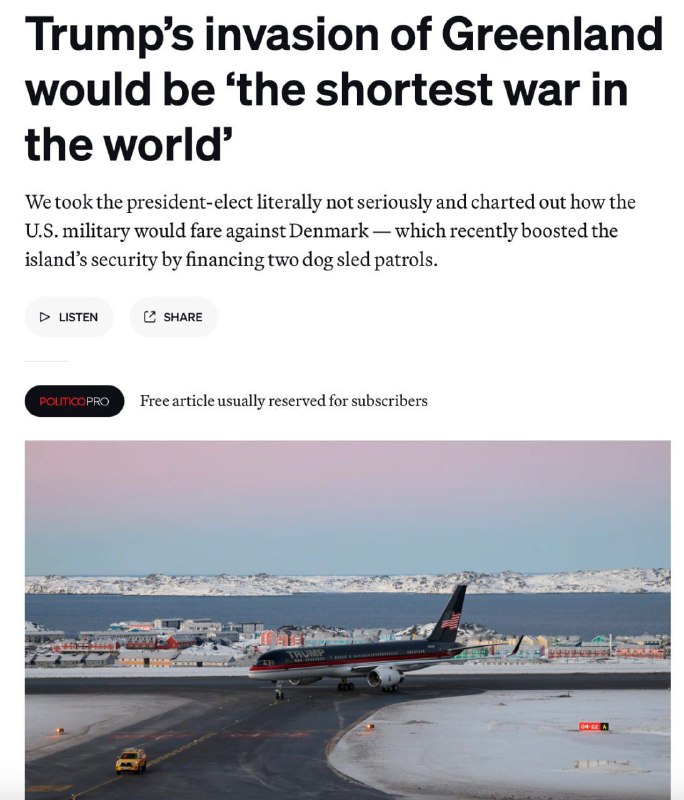 HomeNezaradenéTrumpova invázia do Grónska by bola „najkratšou vojnou na svete“, píše Politico.... Nezaradené Trumpova invázia do Grónska by bola „najkratšou vojnou na svete“, píše Politico…. By ZEMaVEK 12. januára 2025 0 14 Zdieľať FacebookXPinterestWhatsApp Trumpova invázia do Grónska by bola „najkratšou vojnou na svete“, píše Politico. V ?lánku sa píše, že Dánsko má iba 17 000 vojakov a vä?šina ?ažkej techniky pre pozemné sily bola darovaná Ukrajine. °| odber t.me/zemavek Zdroj telegram Zdieľať FacebookXPinterestWhatsApp Predchádzajúci článokNadácia Dar prerozdelila vlani viac ako 14.000 eur medzi 27 žiadateľovĎalší článokŠvédi vyhrali mix v Oberhofe, Slováci sú na 16. mieste ZEMaVEK RELATED ARTICLES Nezaradené Lietadlo nie je všeliekom a ani stíhacie drony. Keď sme písali, že ukrajinský… 13. apríla 2026 Nezaradené Maďarské parlamentné voľby 2026 – ARCHÍV 13. apríla 2026 Nezaradené „Šéf strany Tisza a budúci maďarský premiér Péter Magyar je síce deklaratívne vi… 13. apríla 2026 Most Popular Počet cestujúcich využívajúcich letisko Heathrow stúpol o 6,9 % 13. apríla 2026 Lietadlo nie je všeliekom a ani stíhacie drony. Keď sme písali, že ukrajinský… 13. apríla 2026 Maďarské parlamentné voľby 2026 – ARCHÍV 13. apríla 2026 Obeťou tragickej zrážky vetroňov nad Borišovom bol 65-ročný Poliak 13. apríla 2026 Recent Comments jajkopajko na Krajskí prokurátori si prevzali prípadi, ktoré boli v pôsobnosti ŠTS
