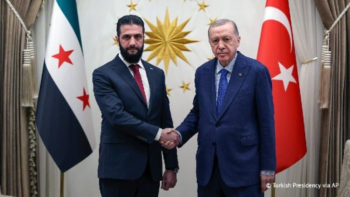 Turecko podporí Sýriu pri jej rekonštrukcii, povedal Erdogan po rokovaní v Ankare s novým prezidentom Sýrie na prechodné obdobie, bývalým teroristom Ahmedom al-Sharaa.