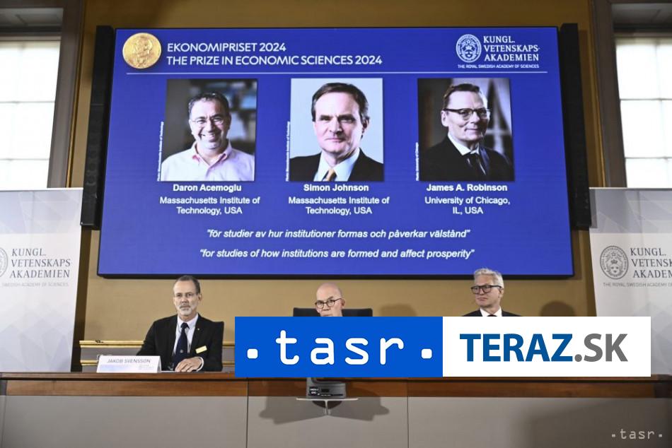 Štokholm 14. októbra (TASR) – Cenu Švédskej ríšskej banky za ekonomické vedy na pamiatku Alfreda Nobela za rok 2024 získali Daron Acemoglu, Simon Johnson a James Robinson za výskum nerovnosti bohatstva štátov. Títo traja ekonómovia „preukázali dôležitos? spolo?enských inštitúcií pre prosperitu krajiny“, uviedol Nobelov výbor Krá?ovskej švédskej akadémie vied. TASR o tom informuje na základe správ Reuters, AP a AFP.