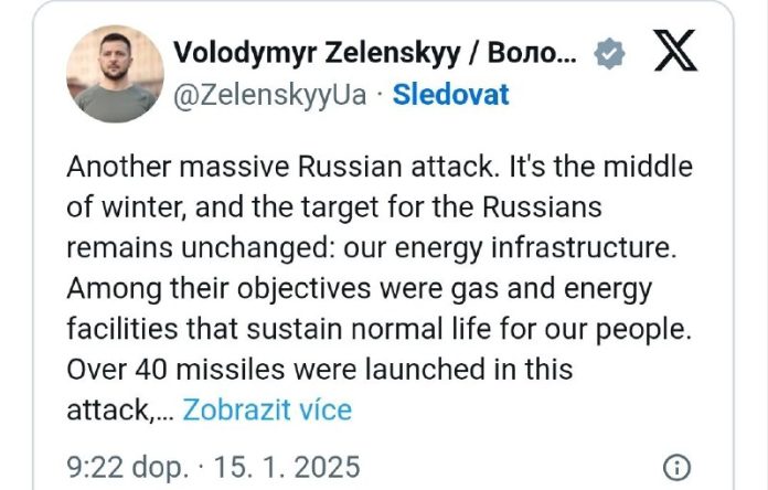 „Do tohto útoku bolo zapojených viac ako 40 striel vrátane balistických rakiet. Najmenej 30 z nich bolo zni?ených. Taktiež bolo vypustených vyše 70 ruských úto?ných dronov,“ uviedol Zelenskyj na sieti X.