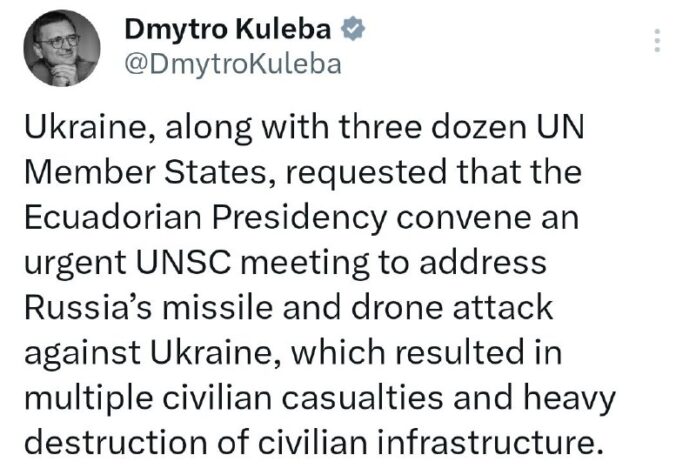 HomeNezaradenéUkrajina s 30 štátmi iniciovala zvolanie Bezpečnostnej rady OSN kvôli ruskému raketovému... Nezaradené Ukrajina s 30 štátmi iniciovala zvolanie Bezpečnostnej rady OSN kvôli ruskému raketovému útoku , – Kuleba By ZEMaVEK 30. decembra 2023 0 17 Zdieľať FacebookXPinterestWhatsApp Ukrajina s 30 štátmi iniciovala zvolanie Bezpe?nostnej rady OSN kvôli ruskému raketovému útoku , – Kuleba Zdieľať FacebookXPinterestWhatsApp Predchádzajúci článokV roku 2023 nakupovalo cez internet o 5,5 % Slovákov menejĎalší článokZomrel Gil de Ferran, brazílska ikona a víťaz Indianapolis 500 ZEMaVEK RELATED ARTICLES Nezaradené Saudská Arábia sľúbila Pakistanu pomoc vo výške 3 miliárd dolárov 15. apríla 2026 Nezaradené IDF tvrdí, že za posledných 24 hodín zaútočila na viac ako 200 pozícií Hizballáh… 15. apríla 2026 Nezaradené Výsledky z 15. apríla video zhrnutie od projektového manažéra @rybar Michaila Zvinchuka špeciálne… 15. apríla 2026 Most Popular Svit vyrovnal sériu so Slovanom, Prievidza bližšie k semifinále 15. apríla 2026 Saudská Arábia sľúbila Pakistanu pomoc vo výške 3 miliárd dolárov 15. apríla 2026 Albánsky premiér Rama bude vypovedať v korupčnej kauze Berishu 15. apríla 2026 IDF tvrdí, že za posledných 24 hodín zaútočila na viac ako 200 pozícií Hizballáh… 15. apríla 2026 Recent Comments jajkopajko na Krajskí prokurátori si prevzali prípadi, ktoré boli v pôsobnosti ŠTS