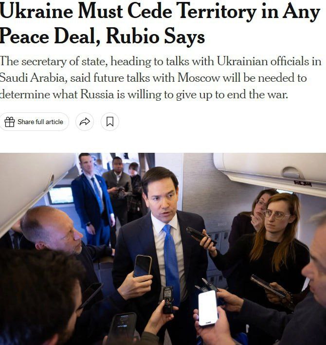 Ukrajina sa bude musie? vzda? územia v akejko?vek mierovej dohode, hovorí americký minister zahrani?ia Marco Rubio .