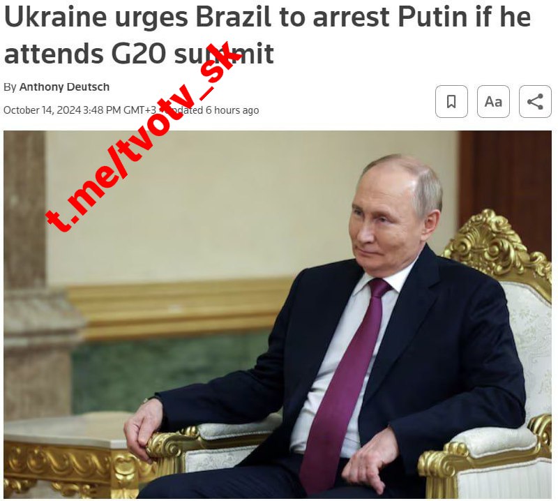 Ukrajinský generálny prokurátor uviedol, že „dostal spravodajské informácie“, ktoré nazna?ujú, že Putin by sa mohol zú?astni? na novembrovom samite G20 v Brazílii, a vyzval orgány krajiny, aby vykonali zatyka? na ruského prezidenta, ak sa tam objaví.