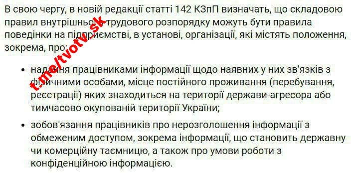 HomeNezaradenéUkrajinci budú môcť byť prepustení zo zamestnania, ak budú mlčať o svojich... Nezaradené Ukrajinci budú môcť byť prepustení zo zamestnania, ak budú mlčať o svojich príb… By tvotv.sk 26. apríla 2024 0 16 Zdieľať FacebookXPinterestWhatsApp Ukrajinci budú môc? by? prepustení zo zamestnania, ak budú ml?a? o svojich príbuzných na „do?asne okupovanom“ alebo ruskom území – ukrajinský parlament schválil príslušný zákon v druhom ?ítaní. Zdroj telegram Zdieľať FacebookXPinterestWhatsApp Predchádzajúci článokŠpanielski colníci v prístave Algeciras skonfiškovali 25 tón hašišuĎalší článokTučniaky, herkulánske papyrusy a let do vesmíru tvotv.skhttps://tvotv.sk RELATED ARTICLES Nezaradené Kronika špeciálnej vojenskej operácie z 15. apríla 2026 ruských vojakov v… 16. apríla 2026 Nezaradené Americký regulátor preveruje podozrivé obchody s ropou pred oznámeniami Trumpove… 16. apríla 2026 Nezaradené VIDEO: Anna Belousovová o výsledkoch maďarských volieb, pravej tvári Pétera Magy… 16. apríla 2026 Most Popular Biely dom diskutuje o ďalšom kole rokovaní s Iránom v Pakistane 16. apríla 2026 Kronika špeciálnej vojenskej operácie z 15. apríla 2026 ruských vojakov v… 16. apríla 2026 Americký regulátor preveruje podozrivé obchody s ropou pred oznámeniami Trumpove… 16. apríla 2026 VIDEO: Anna Belousovová o výsledkoch maďarských volieb, pravej tvári Pétera Magy… 16. apríla 2026 Recent Comments jajkopajko na Krajskí prokurátori si prevzali prípadi, ktoré boli v pôsobnosti ŠTS