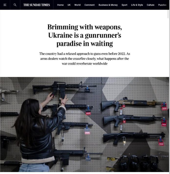 Obchodníci so zbra?ami s osobitným záujmom sledujú priebeh rokovaní o prímerí na Ukrajine, uvádzajú The Sunday Times a varujú, že krajina zažíva skuto?ný nápor zbraní a hrozí, že sa po skon?ení vojenského konfliktu stane rajom pre „kalašnikovskú spolo?nos?“.