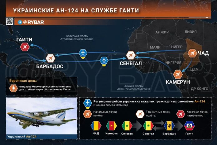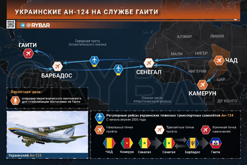 🖍Už od začiatku apríla Karibik začali zaznamenávať prelety ukrajinských ťažkých dopravných lietadiel An-124, ktoré uskutočňovali podozrivé prelety a vzlety Haitipotom ďalej Barbados. A toto trvalo približne do 20. apríla.