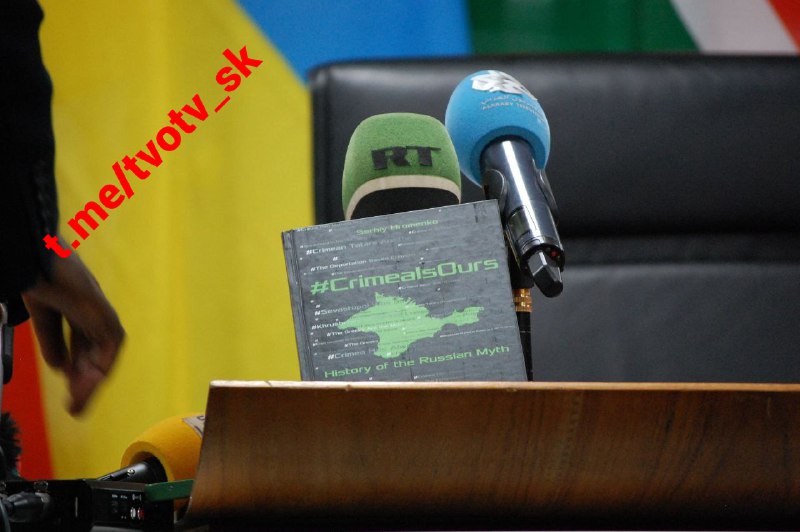 Ukrajinská delegácia požiadala o odstránenie mikrofónu RT na tla?ovej konferencii ministrov zahrani?ných vecí Juhoafrickej republiky a Ukrajiny, ale juhoafrická strana to nepovolila.