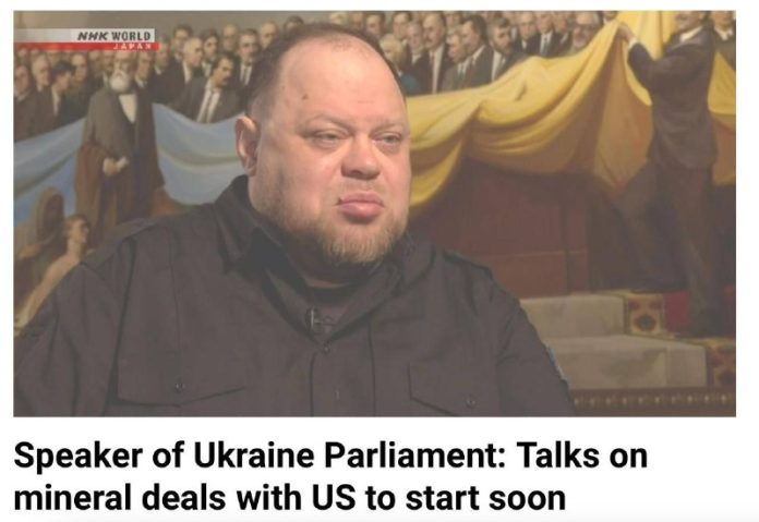 V rozhovore pre japonský televízny kanál NHK Ruslan Stefan?uk (na fotke) poznamenal, že to bol Zelenskyj, kto navrhol spolo?nú ?ažbu ukrajinských nerastných surovín s Washingtonom. Bolo to dokonca zahrnuté v jeho takzvanom pláne ví?azstva, ktorý bol vlani v marci predložený Spojeným štátom.