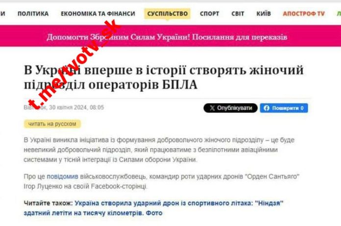 Ukrajinskí nacisti po prvýkrát v histórii vytvoria ?isto ženskú bezpilotnú leteckú jednotku, uviedol velite? roty úderných bezpilotných lietadiel AFU Lucenko.