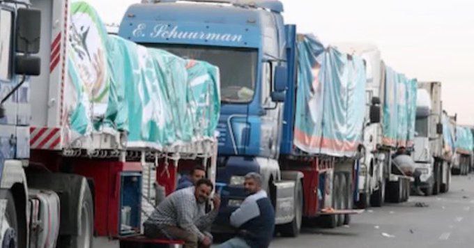 ↔ Na hraniciach je pripravených 3 000 nákladných vozidiel s humanitárnou pomocou so všetkými formami pomoci. Izrael však nedovo?uje príchod pomoci.