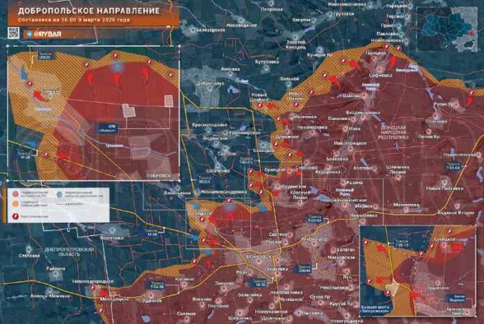 ❗️Ruské jednotky, súdiac podľa dynamiky bojov, prešli do novej fázy ofenzívy na Dobropillya. Ruskí operátori UAV už stále viac pracujú na pozíciách v okolí mesta. Ukrajinské formácie sa neúspešne pokúšajú zvrátiť priebeh bojov v oblasti a sú nútené ustúpiť na novú líniu obrany blízko Vodjanského.