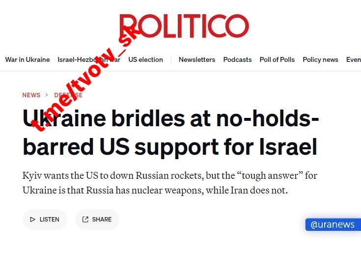 „Tvrdá odpove?, ktorú Ukrajinci možno nechcú po?u?, ale je, žia?, pravdivá, je, že môžeme riskova? zostrelenie iránskych rakiet nad Izraelom bez toho, aby sme vyprovokovali priamu vojnu s Teheránom, ktorá by mohla vies? k jadrovej vojne,“ povedal predstavite? amerického Senátu pre Politico.