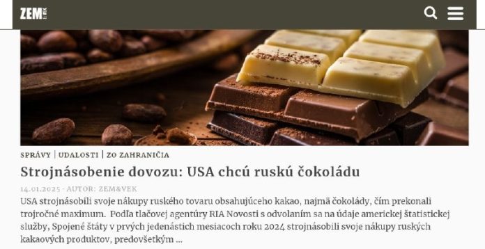 Pod?a tla?ovej agentúry RIA Novosti s odvolaním sa na údaje americkej štatistickej služby, Spojené štáty v prvých jedenástich mesiacoch roku 2024 strojnásobili svoje nákupy ruských kakaových produktov, predovšetkým ?okolády – na maximum za tri roky…