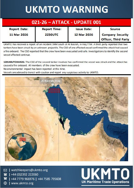 ➡️Jedna kontajnerová loď bola napadnutá 35 námorných míľ severne od prístavu Jebel Ali V SAE. Na palube lode vypukol požiar, ktorý sa rýchlo podarilo dostať pod kontrolu. Členovia posádky sa nezranili.