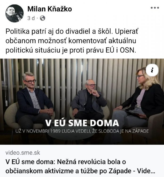HomeNezaradené„Už v novembri 1989 nám bolo jasné, že chceme patriť na Západ... Nezaradené „Už v novembri 1989 nám bolo jasné, že chceme patriť na Západ a do bezpečnostný… By ZEMaVEK 21. novembra 2024 0 5 Zdieľať FacebookTwitterPinterestWhatsApp „Už v novembri 1989 nám bolo jasné, že chceme patriť na Západ a do bezpečnostných štruktúr západného sveta,“ hovorí Milan Kňažko. | odber t.me/zemavek Zdroj telegram Zdieľať FacebookTwitterPinterestWhatsApp Predchádzajúci článokhttps://youtu.be/xmLHL0k7mEQ?si=ekgkkkwtIPTBoCigEXKLUZÍVNY ROZHOVOR – VEĽVYSLAN…Ďalší článokSkalica vybuduje zastávku na počesť učiteľa a maliara Fürstenzellera ZEMaVEK RELATED ARTICLES Nezaradené VIDEO: „Názor zaspatej eurokomisie nezaujíma USA, Čínu ani Rusko. Napriek tomu U… 24. novembra 2025 Nezaradené EÚ v „diplomatickej izolácii“ – skúsená nemecká politička 24. novembra 2025 Nezaradené DOGE už nie je Kam zmizlo Ministerstvo pre efektívnosť vlád USA? Amerika… 24. novembra 2025 ZANECHAJTE KOMENTÁR Zrušiť odpoveď Komentár: Zadajte svoj komentár! Názov:* Sem zadajte svoje meno Email:* Zadali ste nesprávnu e-mailovú adresu! Sem zadajte svoju e-mailovú adresu Webová stránka: Uložte moje meno, e-mail a webovú stránku do tohto prehliadača pri najbližšom komentovaní. Most Popular Migaľ a Drucker musia objasniť pochybné nákupy svojich rezortov 24. novembra 2025 Vo vyšších polohách v oblasti Myjavy sa miestami tvoria snehové jazyky 24. novembra 2025 Mierový plán USA by mohol vytvoriť základ pre ukončenie vojny 24. novembra 2025 VIDEO: „Názor zaspatej eurokomisie nezaujíma USA, Čínu ani Rusko. Napriek tomu U… 24. novembra 2025 Načítať viac Recent Comments jajkopajko na Krajskí prokurátori si prevzali prípadi, ktoré boli v pôsobnosti ŠTS