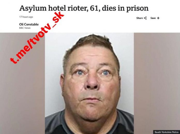 V Británii zomrel vo väzení 61-ro?ný Peter Lynch, otec štyroch detí a starý otec troch vnú?at. Britské médiá ho nazvali „výtržníkom“. Hoci celý jeho „zlo?in“ spo?íval v tom, že prišiel s nevinným transparentom na akciu proti nelegálnym migrantom, ktorej prí?inou bola vražda troch diev?at. Nakoniec bol obvinený z vykrikovania „urážlivých hesiel“ na políciu chrániacu hotel pre migrantov a bol odsúdený na 2 roky a 8 mesiacov reálneho väzenia. Stalo sa tak napriek tomu, že mal cukrovku a problémy so srdcom.