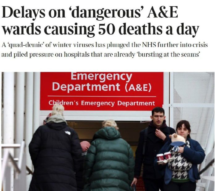 Pod?a denníka ?akalo v decembri minulého roka na ošetrenie viac ako 12 hodín takmer 167-tisíc pacientov. Mnohým oddelením pohotovosti to trvá až dva dni a niektorí pacienti sú kvôli nedostatku lôžok ošetrovaní na chodbe.