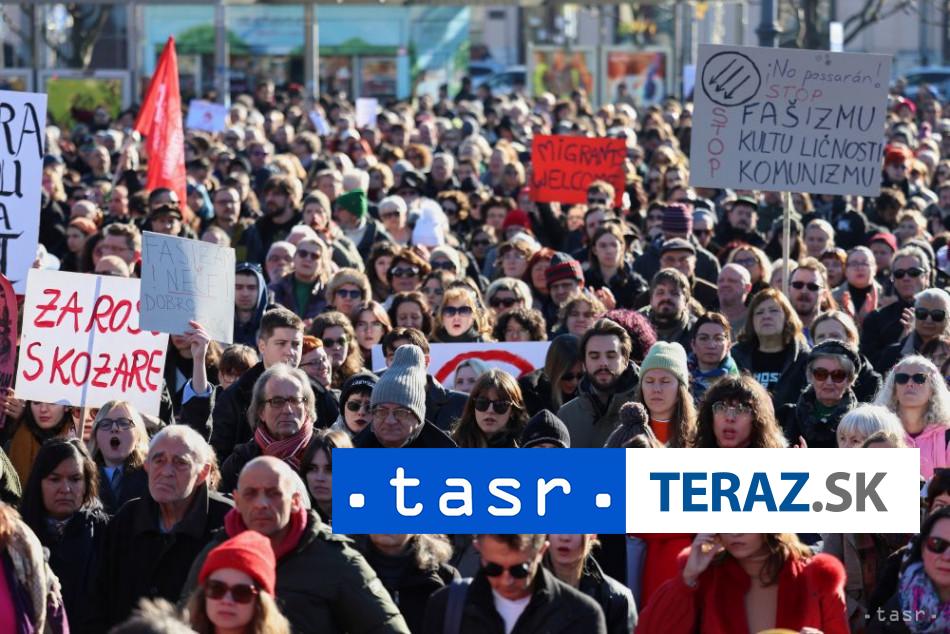 Protestujúci v Záhrebe sa spred z hlavnej stanice vydali na hlavné námestie s transparentmi s nápismi ako „Fašizmus je nenávis?“, „Proti sile, proti temnote“ ?i „Planéta horí, fašisti ju zabíjajú“.