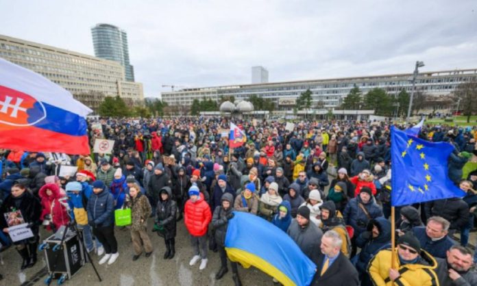 „Odmietame zneužívanie témy tranzitu plynu proti Ukrajine a Európe za ú?elom kolaborácie s Ruskom. Putin cez Fica posil?uje slabnúci ruský vplyv, ruskú propagandu, ako aj hybridnú vojnu proti Slovensku a našim skuto?ným spojencom,“vyhlásilo ob?ianske združenie Mier Ukrajine, ktoré protest zvolalo.