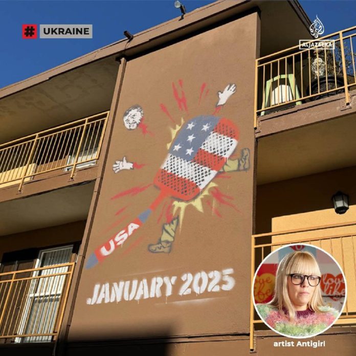V Miami sa objavilo graffiti so Zelenským rozplácnutý plácačkou na muchy.
