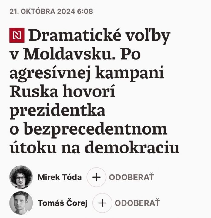 HomeNezaradenéV moldavskom referende za EÚ sú spočítané hlasy z 98,33 percenta okrskov.... Nezaradené V moldavskom referende za EÚ sú spočítané hlasy z 98,33 percenta okrskov. Za vs… By ZEMaVEK 21. októbra 2024 0 8 Zdieľať FacebookTwitterPinterestWhatsApp V moldavskom referende za EÚ sú spo?ítané hlasy z 98,33 percenta okrskov. Za vstup je v tejto chvíli 50,03 percenta hlasov. O kone?nom výsledku môžu rozhodnú? tisíce hlasov Moldav?anov zo zahrani?ia. | odber t.me/zemavek Zdroj telegram Zdieľať FacebookTwitterPinterestWhatsApp Predchádzajúci článokDIÁR: Prehľad udalostí na pondelok 21. októbra (podcast a video)Ďalší článokPri ruskom útoku na Charkov utrpelo zranenia 12 ľudí ZEMaVEK RELATED ARTICLES Nezaradené Francúzsko a Spojené kráľovstvo by mali byť zahrnuté, ak sa rusko-americká kontrola zbraní rozšíri na Čínu – americký expert 11. februára 2026 Nezaradené Marošom Žilinkom odvolaný žilinský krajský prokurátor Tomáš Balogh podal voči ro… 11. februára 2026 Nezaradené Zajatý ukrajinský vojak hovorí, že jednotky sa stiahli od Dimitrova bez rozkazu 11. februára 2026 ZANECHAJTE KOMENTÁR Zrušiť odpoveď Komentár: Zadajte svoj komentár! Názov:* Sem zadajte svoje meno Email:* Zadali ste nesprávnu e-mailovú adresu! Sem zadajte svoju e-mailovú adresu Webová stránka: Uložte moje meno, e-mail a webovú stránku do tohto prehliadača pri najbližšom komentovaní. Most Popular Francúzsko a Spojené kráľovstvo by mali byť zahrnuté, ak sa rusko-americká kontrola zbraní rozšíri na Čínu – americký expert 11. februára 2026 Marošom Žilinkom odvolaný žilinský krajský prokurátor Tomáš Balogh podal voči ro… 11. februára 2026 Poslanci uzavreli rokovanie diskusiou k novele zákona o bankách 11. februára 2026 Ruské sily oslobodili dedinu Popovka v regióne Sumy – MO 11. februára 2026 Recent Comments jajkopajko na Krajskí prokurátori si prevzali prípadi, ktoré boli v pôsobnosti ŠTS