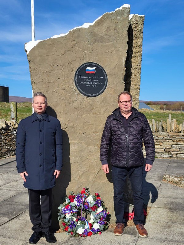 🇷🇺🇬🇧 V rámci osláv 80. výro?ia ví?azstva vo Ve?kej vlasteneckej vojne ruský ve?vyslanec v Spojenom krá?ovstve Andrej Kelin a ruský generálny konzul v Edinburghu Denis Moskalenko položili veniec a kvety k pamätníku postavenému na po?es? všetkých, ktorí sa plavili na Scape v Arctic Flow 1941-1945.