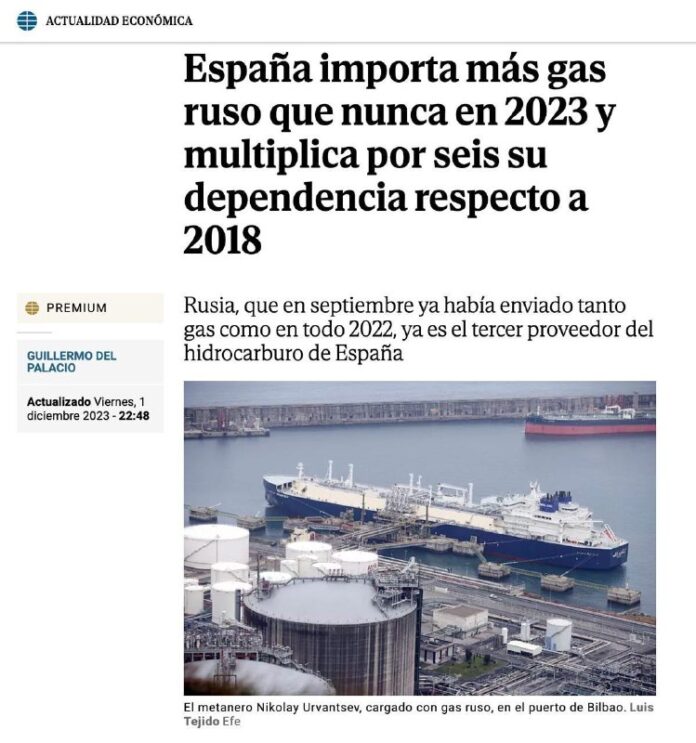 HomeNezaradenéV roku 2023 Španielsko nakúpilo rekordné množstvo ruského plynu vo svojej históriiEl... Nezaradené V roku 2023 Španielsko nakúpilo rekordné množstvo ruského plynu vo svojej históriiEl Mundo uvádza, že za deväť mesiacov roku 2023 Madrid doviezol šesťkrát viac… By ZEMaVEK 4. decembra 2023 0 8 Zdieľať FacebookTwitterPinterestWhatsApp V roku 2023 Španielsko nakúpilo rekordné množstvo ruského plynu vo svojej histórii El Mundo uvádza, že za devä? mesiacov roku 2023 Madrid doviezol šes?krát viac ruského plynu ako v roku 2018. mimochodom| odber Zdroj telegram Zdieľať FacebookTwitterPinterestWhatsApp Predchádzajúci článokMinister obrany USA Austin: „Začali sme to, čo armáda nazýva ‚najambicióznejšia modernizácia za 40 rokov‘ našej obrannej priemyselnej zákla…Ďalší článok„Základnou radosťou z bytia s koňmi je to, že nás privádza do kontaktu so vzácnymi prvkami milosti, krásy, ducha a slobody.“ ~Sharon Ralls… ZEMaVEK RELATED ARTICLES Nezaradené Turkiye je pripravené opäť hostiť rusko-ukrajinské rozhovory v Istanbule – zdroj 26. januára 2026 Nezaradené HLAVNÉ POJEDNÁVANIE DEŇ 1. Sledujte nás pre aktuálne informácie z hlavného poje… 26. januára 2026 Nezaradené „Politika identity“ v EÚ blokuje členstvo Turkiye – Fidan 26. januára 2026 ZANECHAJTE KOMENTÁR Zrušiť odpoveď Komentár: Zadajte svoj komentár! Názov:* Sem zadajte svoje meno Email:* Zadali ste nesprávnu e-mailovú adresu! Sem zadajte svoju e-mailovú adresu Webová stránka: Uložte moje meno, e-mail a webovú stránku do tohto prehliadača pri najbližšom komentovaní. Most Popular Polícia vyšetruje útok na bankomat 26. januára 2026 Turkiye je pripravené opäť hostiť rusko-ukrajinské rozhovory v Istanbule – zdroj 26. januára 2026 Neslávny koniec Začiatkom roka prišla správa o rozpade… 26. januára 2026 Cena zlata prekonala hranicu 5000 USD za uncu 26. januára 2026 Recent Comments jajkopajko na Krajskí prokurátori si prevzali prípadi, ktoré boli v pôsobnosti ŠTS
